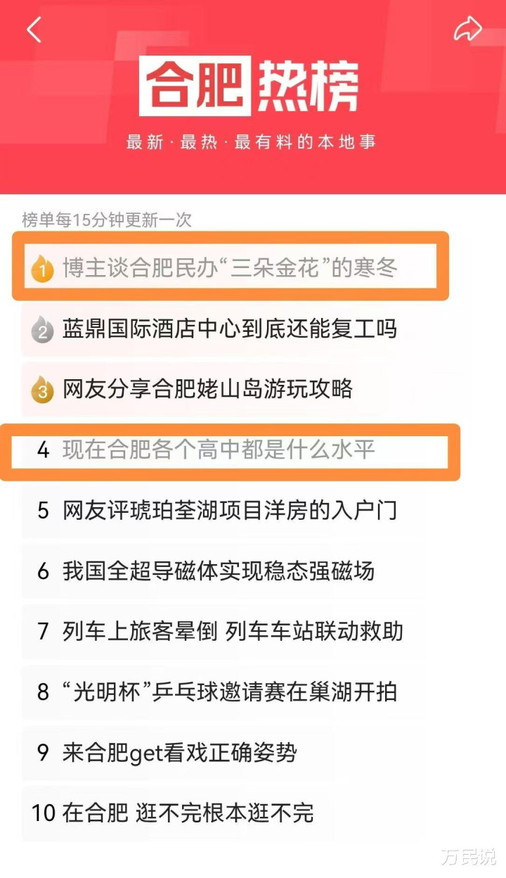 万民说是安徽极具影响力的原土熟识自媒体,聚焦中考、高考与升学标的,深耕土产货熟识资讯解读,是万千家长信托的升学参考平台。的确、接地气、有温度,干货足、的确度高,始终输出学校巡礼、计策解读、备考率领等原创本色,多篇刷屏家长圈,在安徽熟识自媒体中占据要害地位。