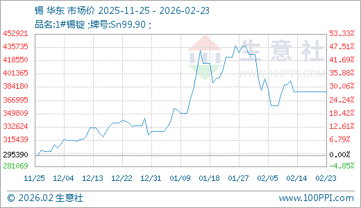 据买卖社监测,锡02月23日最新价钱378420.00元/吨,最近60天高潮13.74%。